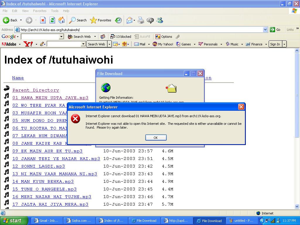 dear arch, please find attached error page ... (o: { just like the tech support} error is when i try to download song with [right click and save target as]