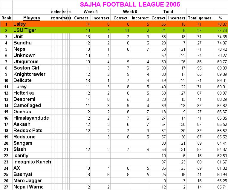 By the way one suggestion on the format of the scoreboard.. u dont need to have a separate column for incorrect.. i would just give the total game for the week on the top row and have only the correct column.. this probably allow for more weeks and better format..what do u think?