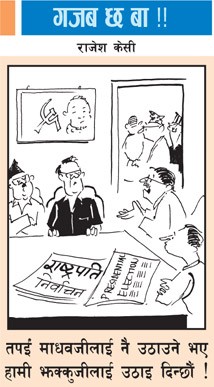 jaba manchhe jhan jhan badi joker bandai janchha, usko barema baneka cartoons pani, obviously, jhan jhan sandarbik ra hit bandai janchhan. third cartoon about presidental election samasamayik nabhaye pani it means a lot even now because MaKuNe is still a top joker in Nepali politics.